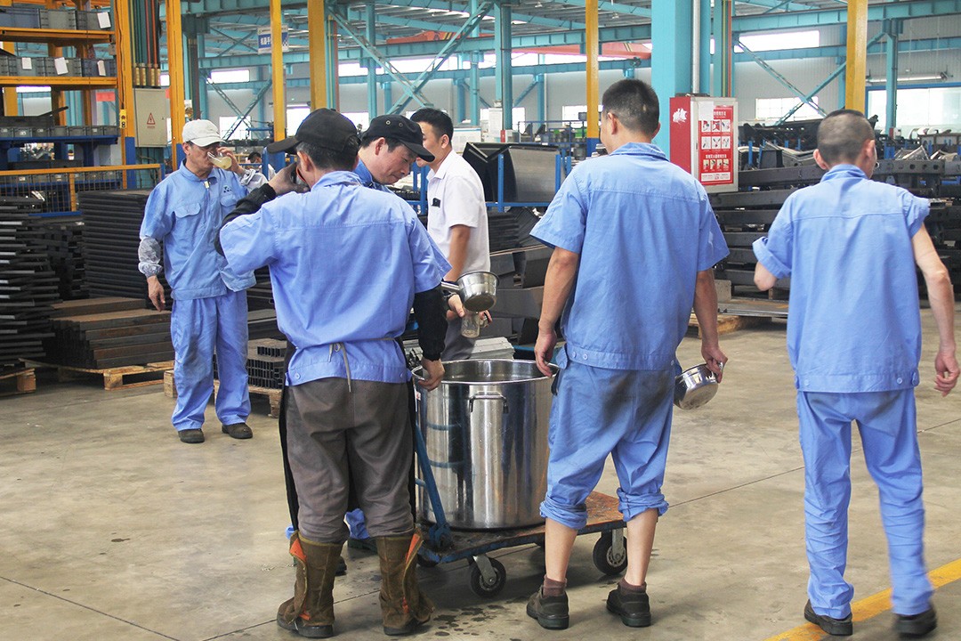 為表達對員工的關心與愛護,公司即日起開展本年度的“夏送清涼”活動,為炎炎夏日依舊堅守在工作崗位上的一線工人們送去了清涼解暑的綠豆湯。