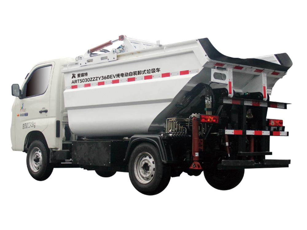 ART5030ZZZY36BEV純電動自裝卸式垃圾車主要用于物業(yè)小區(qū)、鄉(xiāng)鎮(zhèn)、商業(yè)區(qū)、旅游景區(qū)、學(xué)校等場所桶裝垃圾的分類收集運輸,箱體密封性好,純電動作業(yè),使用成本低,零排放。