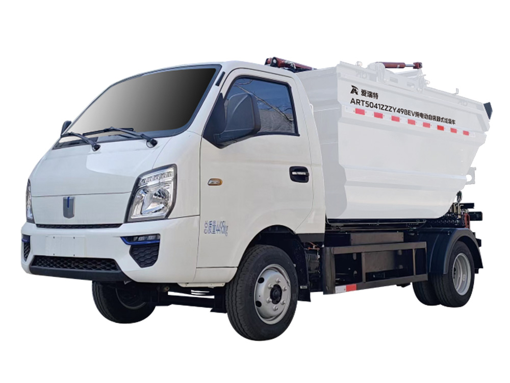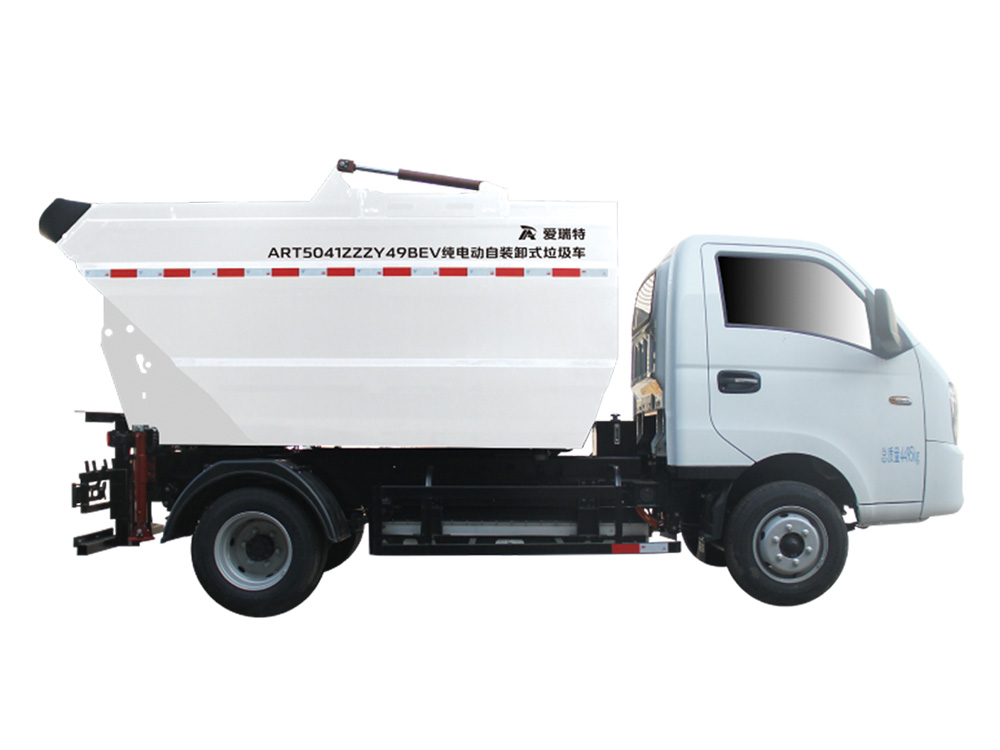 ART5041ZZZY49BEV純電動自裝卸式垃圾車采用后置翻桶機構上料,高位傾翻垃圾箱卸料的生活垃圾收運車,能夠同時滿足兩個標準垃圾桶同時上料,作業效率極高,適合城市小區、主次干道和沿街標準垃圾桶的收運,同時可以與大型純電動壓縮式垃圾車進行車車對接。