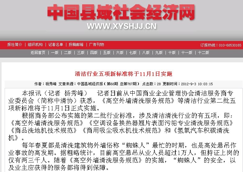 2012年8月24日,愛瑞特主持起草的“商用洗地機(jī)技術(shù)規(guī)范”行業(yè)標(biāo)準(zhǔn)在北京紫玉飯店召開新聞發(fā)布會(huì)。商務(wù)部流通業(yè)發(fā)展司副司長吳國華、中國商業(yè)企業(yè)管理協(xié)會(huì)會(huì)長劉育才、“中清協(xié)”副會(huì)長單位、出席了此次會(huì)議。