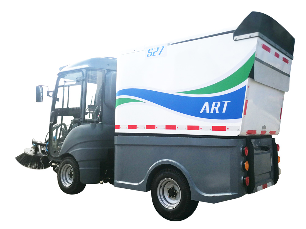 瑞清S27/S27E純電動道路清掃車主要用于柏油馬路、城市人行道、非機(jī)動車道及城市廣場等多種路面的清掃工作,采用純吸方式,可快速清掃落葉、石子、沙塵、白色垃圾等,垃圾箱容量大,高位自卸傾倒。